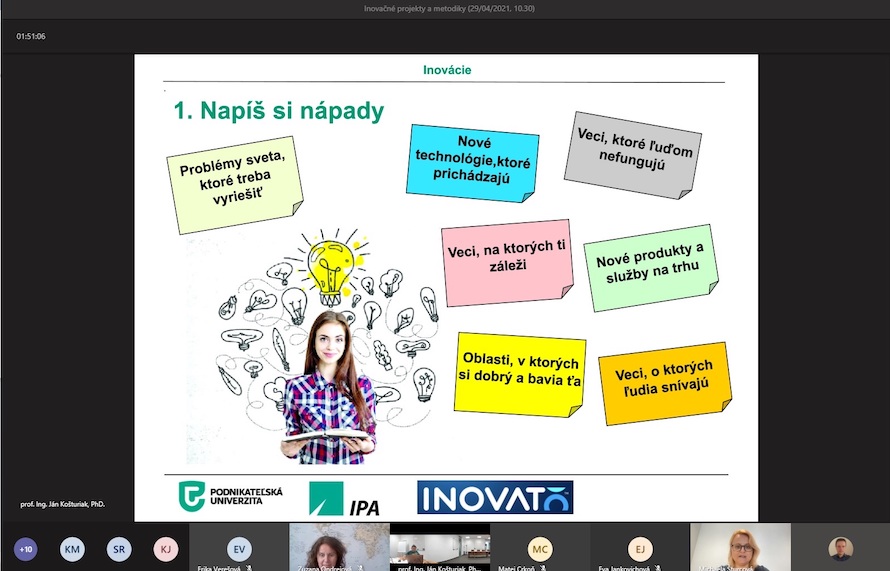 Ďalšia z takýchto prednášok sa uskutočnila online formou vo štvrtok 29.4.2021 v rámci predmetu PhDr. Ing. Zuzany Ondrejovej, PhD. Inovačný manažment, a to na tému